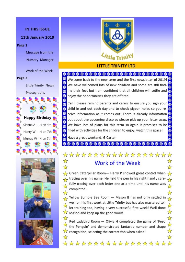 Newsletter 11th January 2019