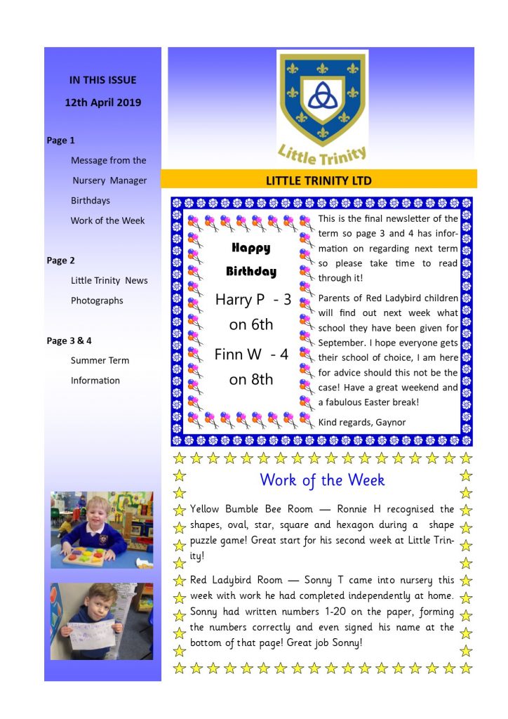 Newsletter 12th April 2019