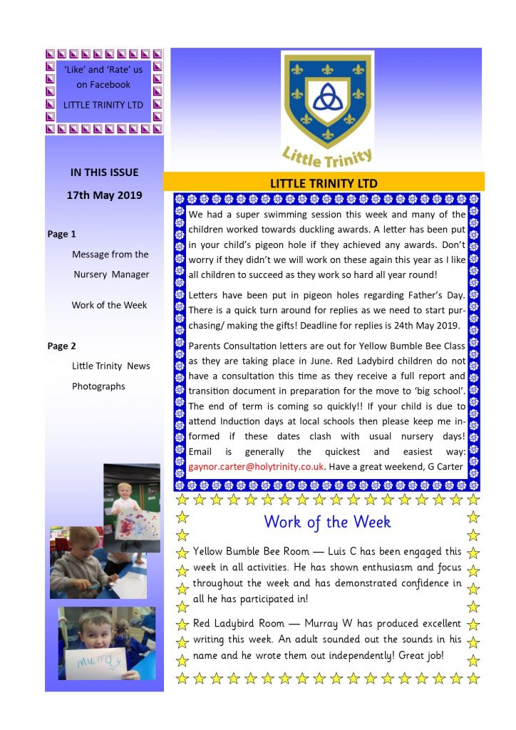 Newsletter 17th May 2019