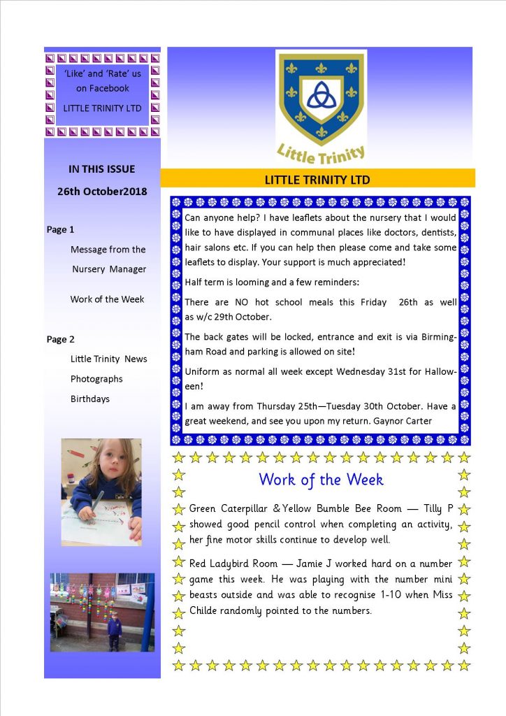 Newsletter 26th October 2018