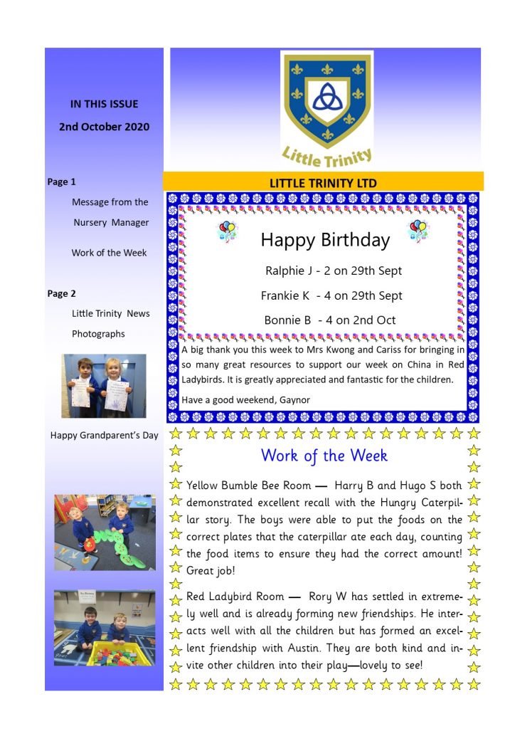 Newsletter 2nd October 2020