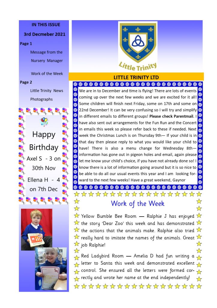Newsletter 3rd December 2021