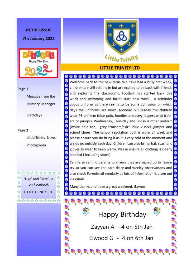 Newsletter 7th January 2022